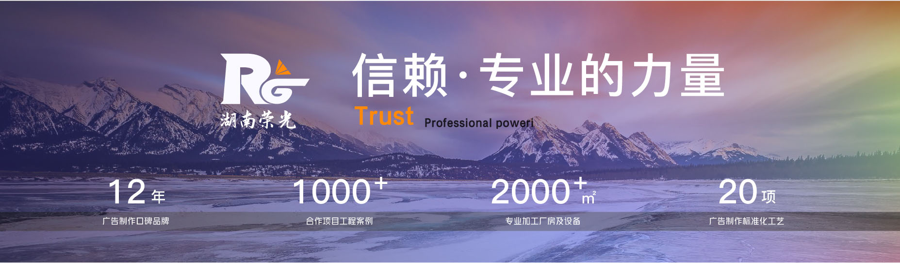 走進湖南榮光About Us湖南榮光公司是一家總部位于長沙的廣告公司,公司現有管理團隊技術骨干20余人,擁有專業的安裝隊伍及售前售后團隊、資深的文化墻設計、黨建文化設計和廣告標識設計團隊,F有廣告標識及發光字加工生產廠房2200平米,150平米標準化烤漆加工房。全自動發光字折彎機、雕刻機、激光切割機、平板UV設備等十余臺。同時具有強大的LED顯示屏供應鏈、為您企業的廣告投入,實現創新和快速反應,提供了有力保障。